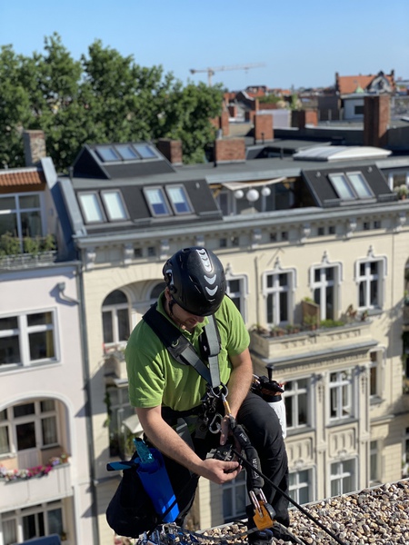 Wir verrichten Arbeiten aller Art an Fassade, Dächern oder Schächten mit und ohne Hebebühnen oder Gerüsten mit der effizienten Seilzugangstechnik.
