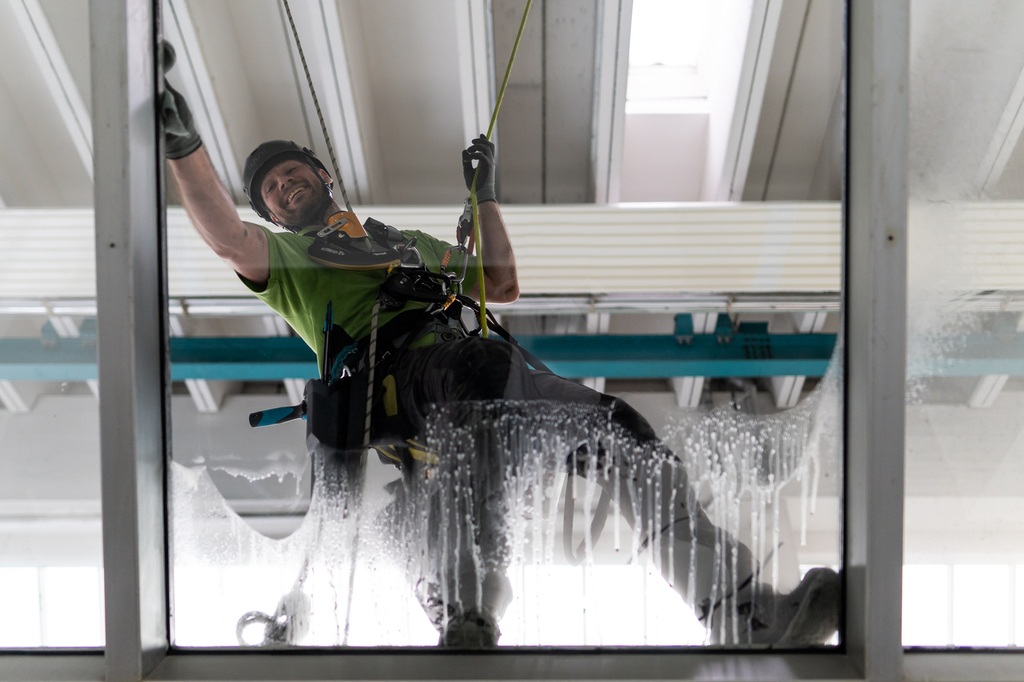 Zu unseren besonderen Spezialitäten gehört die Glasreinigung an Stellen, die nur sehr schwer zugänglich sind.